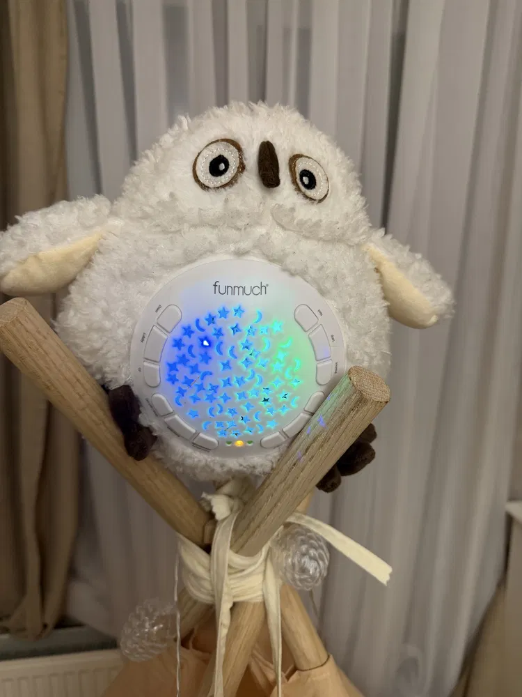 Ky buf i butë dhe simpatik është shumë më tepër se një lodër – është ndihmësi perfekt për gjumin e bebes. I pajisur me dritë projektori me yje dhe melodi qetësuese, krijon një ambient relaksues që ndihmon fëmijën të flejë i qetë. Materiali i butë dhe dizajni i sigurt e bëjnë ideal për përdorim që nga muajt e parë. Një zgjedhje perfekte për dhomën e bebes ose si dhuratë speciale.