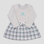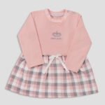 Fustan shumë i ëmbël dhe elegant për vajza bebe, i dizajnuar me kombinim perfekt të pjesës së sipërme të butë dhe fund të stilit klasik me kuadrate. Ideal për përditshmëri apo raste të veçanta.