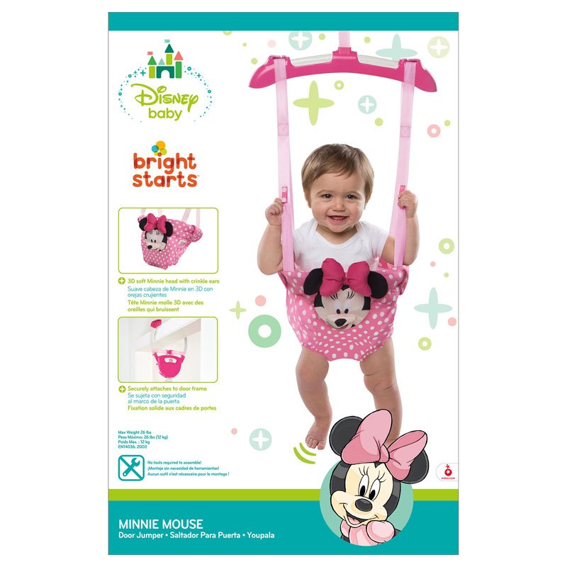 Jumping argëtues për bebe me dizajn Minnie Mouse, i cili ndihmon në zhvillimin e lëvizjes dhe koordinimit të foshnjës. Montim i lehtë në derë dhe shumë i sigurt për përdorim të përditshëm.