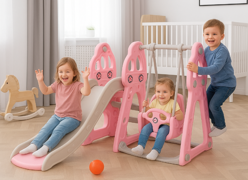 Ky set i bukur lojërash është dizajnuar posaçërisht për fëmijët tuaj që të argëtohen dhe të zhvillojnë aftësitë motorike në mënyrë të sigurt. Ai përfshin një rrëshqitëse të qëndrueshme, një lëkundëse me mbështetëse sigurie dhe një hapësirë të vogël për lojë kreative. Me ngjyra të ngrohta dhe materiale cilësore, ky komplet është ideal për përdorim brenda shtëpisë, duke sjellë gëzim dhe argëtim çdo ditë.