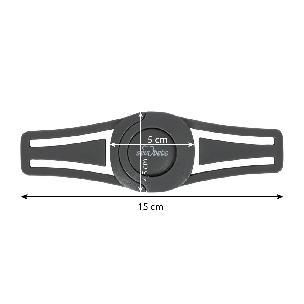 Klips praktik sigurie që parandalon fëmijën të dalë nga rripat e karriges së makinës apo pusetës. Mban rripat në pozicion të sigurt dhe është i përshtatshëm për të gjithë rripat deri në 38 mm. Mund të përdoret edhe për karriget e ushqimit. Vendoset lehtë pa hequr rripin dhe hapet shpejt vetëm nga të rriturit, jo nga fëmija.