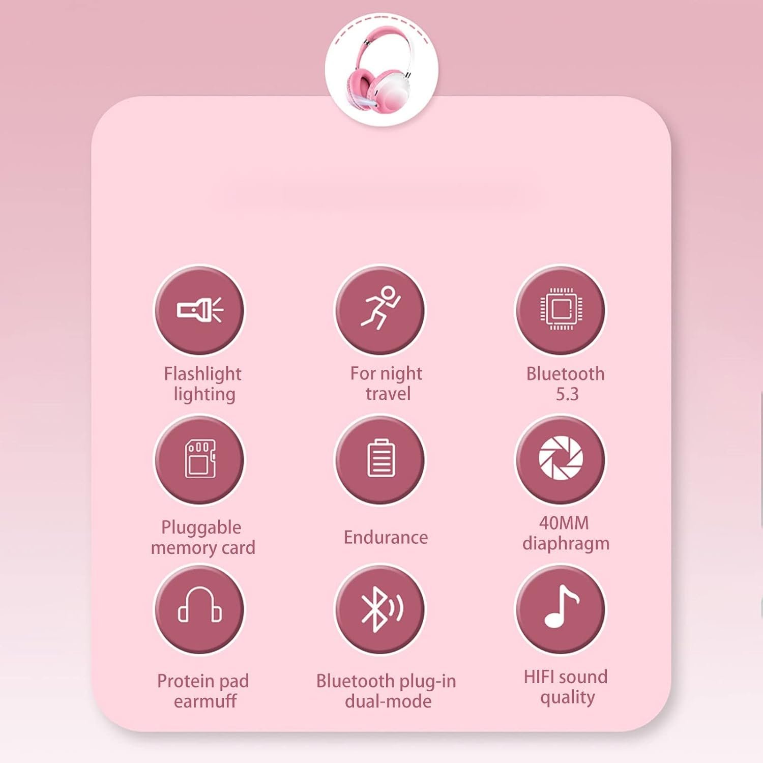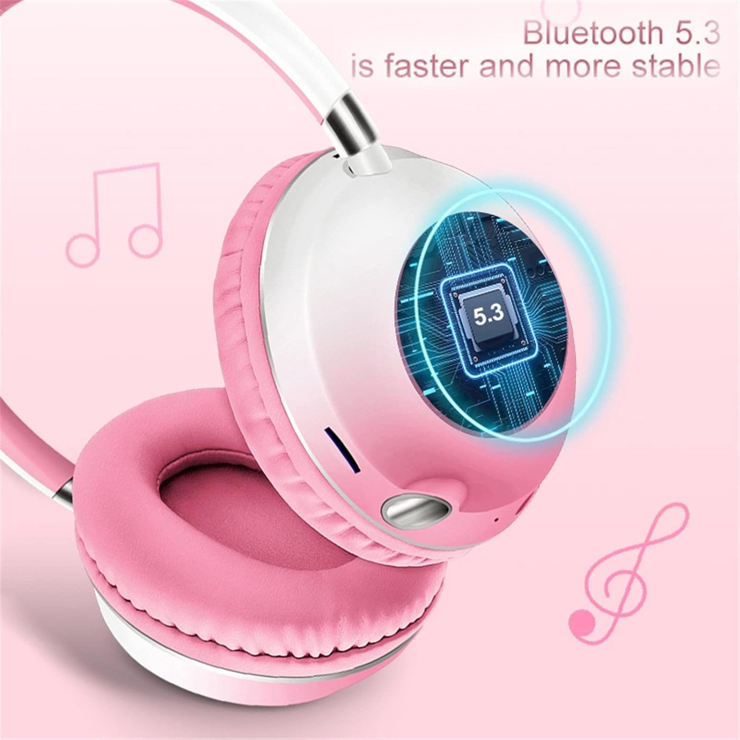 Kufje pa tela për fëmijë me dizajn argëtues me veshë mace, të pajisura me mikrofon me reduktim zhurme dhe kontroll volumi për dëgjim të sigurt. Mbështesin Bluetooth, radio FM dhe kartë memorie TF. Të rehatshme, të lehta dhe ideale për muzikë, mësim online dhe lojë.