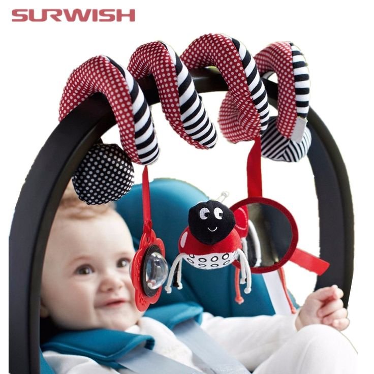 Lodër spirale për karrocë / krevat bebeje (me pasqyrë & lodra)