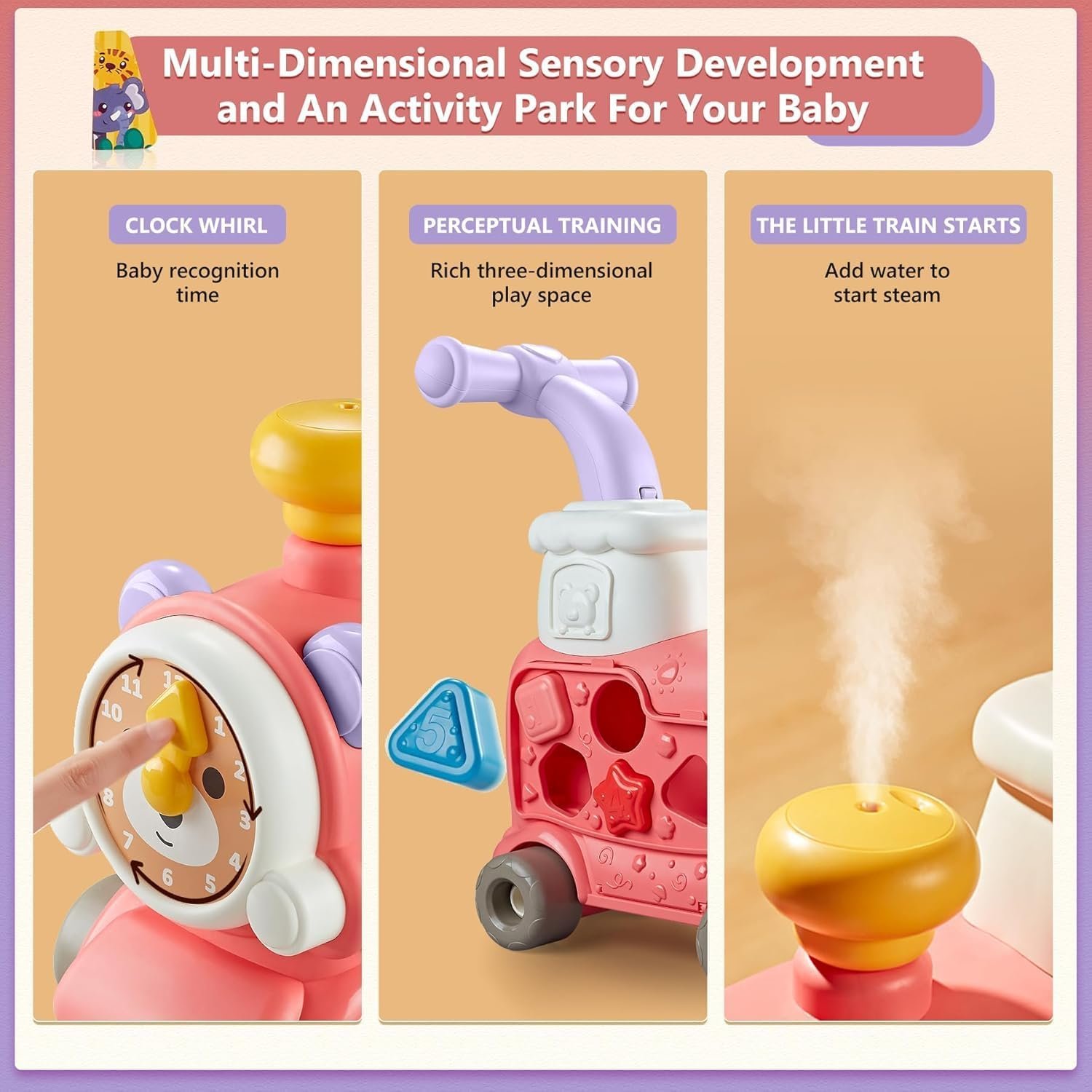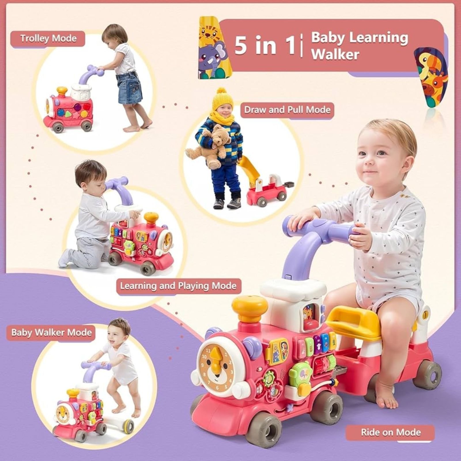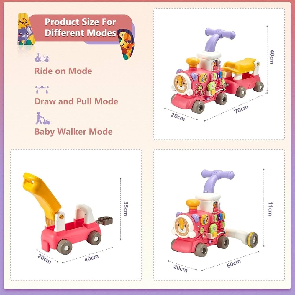 Loder multifunksionale në formë treni, perfekte për zhvillimin dhe argëtimin e fëmijës tuaj. Ky model 5 në 1 përshtatet me çdo fazë të rritjes së bebes.