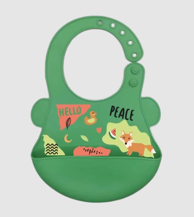 Kjo përparëse silikoni për bebe është zgjedhja ideale për ushqyerje të pastër dhe praktike çdo ditë. E prodhuar nga silikon ushqimor BPA Free, është plotësisht e sigurt për foshnjat dhe miqësore me mjedisin. Materiali i butë dhe fleksibël nuk irriton lëkurën e ndjeshme të bebit, ndërsa dizajni i printuar me figura lozonjare e bën ushqyerjen më argëtuese.