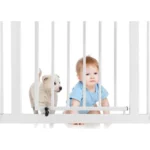 Portë sigurie për fëmijë e dizajnuar për të mbrojtur fëmijët nga zonat e rrezikshme në shtëpi si shkallët, kuzhina apo dhoma të tjera. Struktura metalike e fortë dhe sistemi i mbylljes së sigurt sigurojnë stabilitet dhe përdorim të lehtë për prindërit.