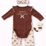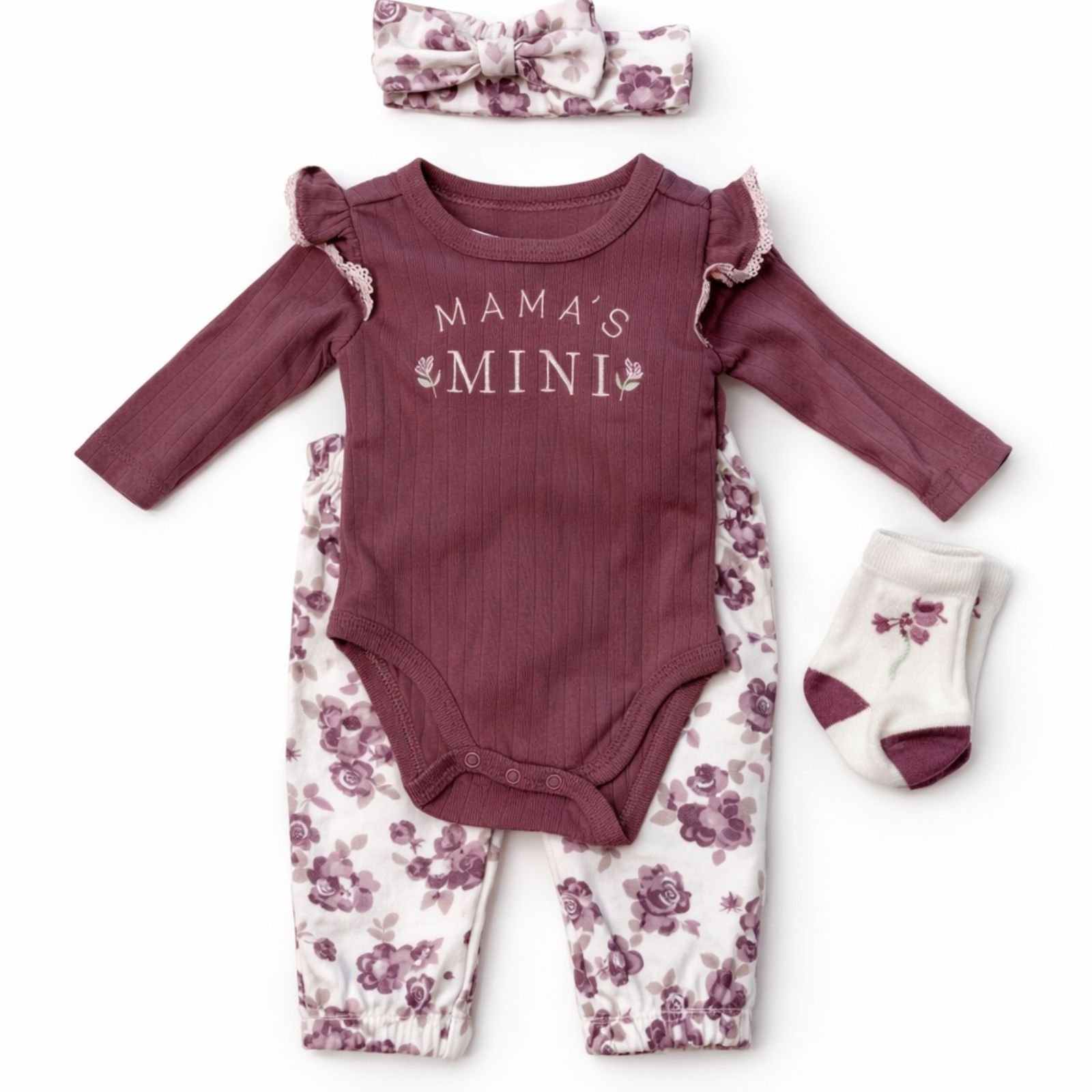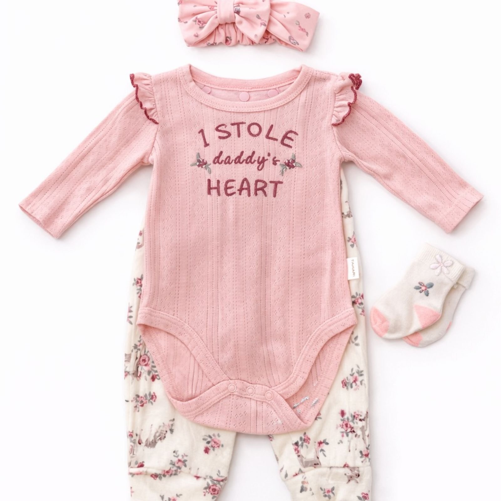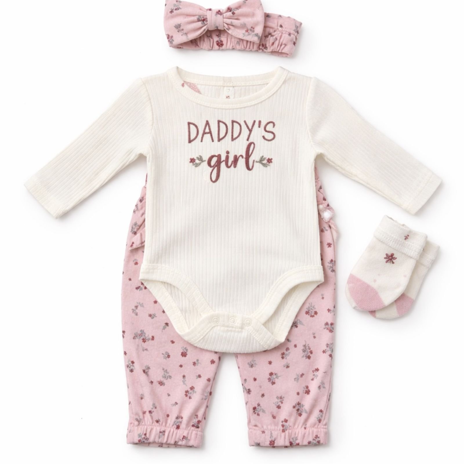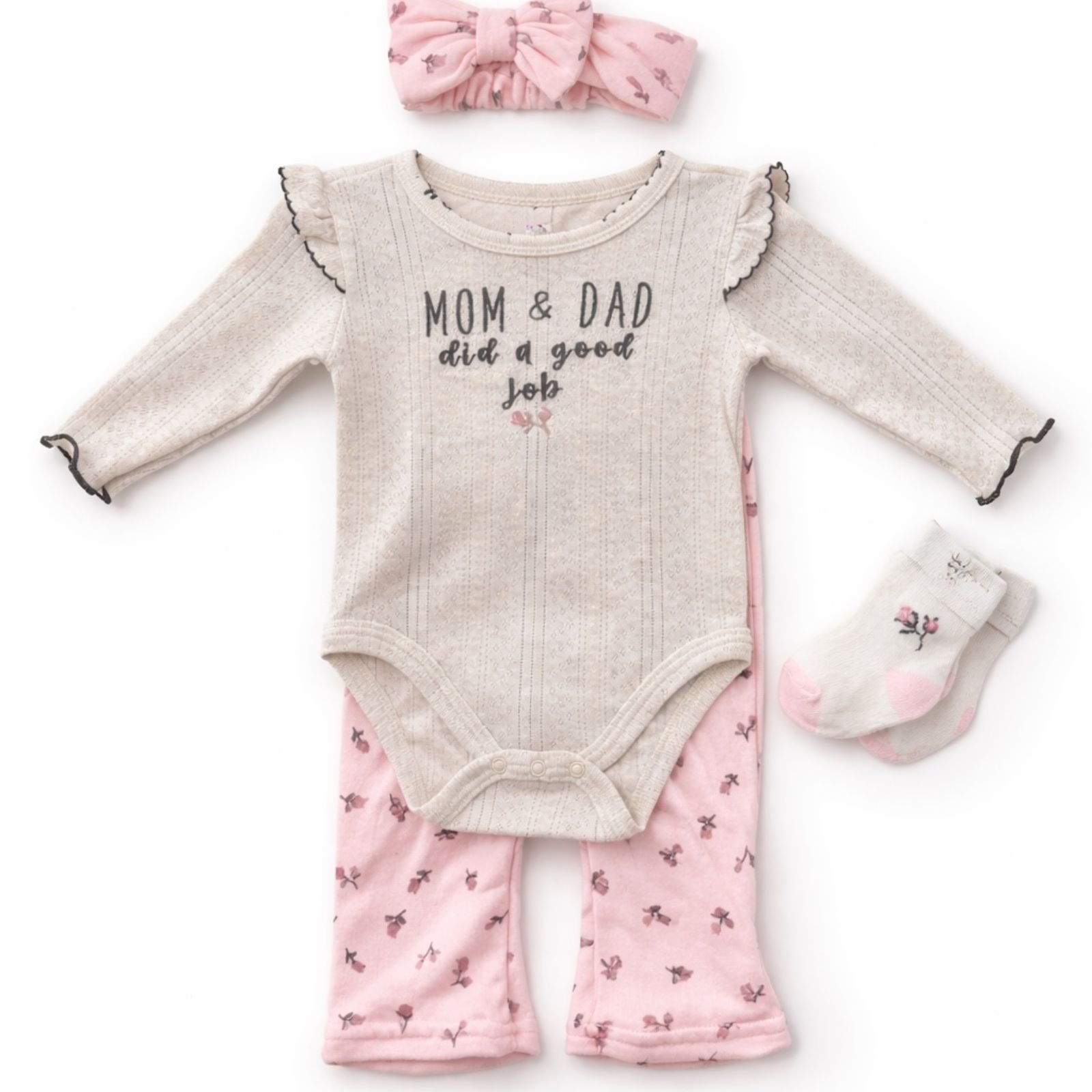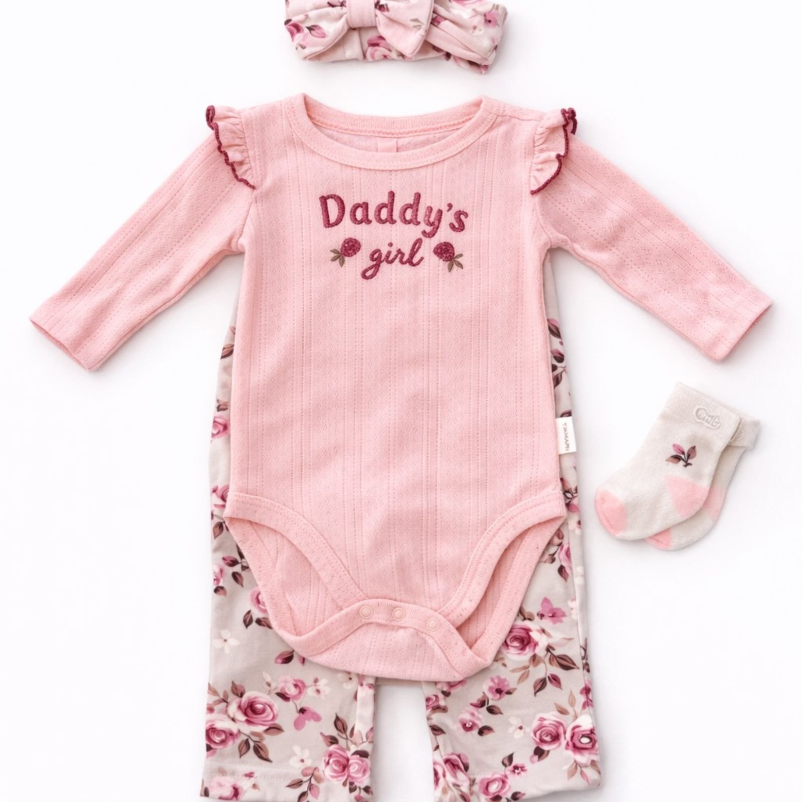 Set elegant për bebe vajza (Body + Pantallona + Shirit koke + Çorape)