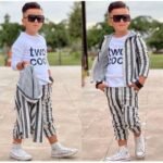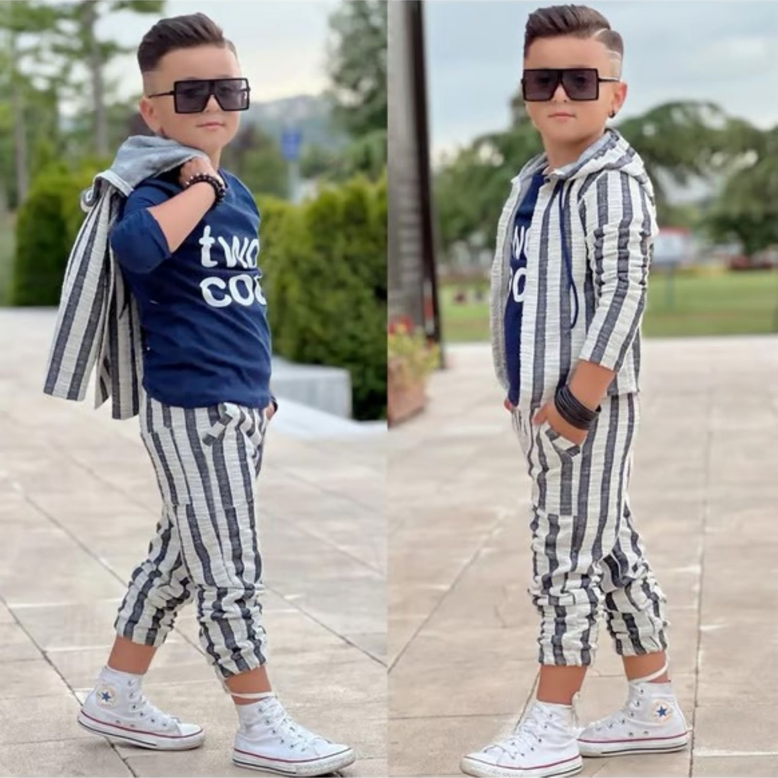 Set shumë stil dhe trend për djem, i përbërë nga 3 pjesë, perfekt për dalje, evente apo përditshmëri me stil. Kombinimi i bluzës me print, pantallonave me vija dhe xhaketës krijon një look modern dhe shumë “cool”.