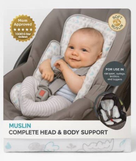 Ky suport i butë dhe i frymëmarrshëm ofron mbrojtje të plotë për kokën dhe trupin e foshnjës, duke e mbajtur të sigurt dhe të rehatshme në çdo ulëse veture, karrocë apo luhatëse.