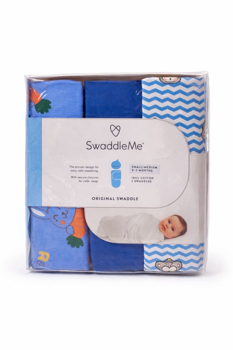 SwaddleMe Original Swaddle është dizajnuar për të ofruar rehati dhe siguri maksimale gjatë gjumit të bebes. Ky set përfshin 3 swaddles 100% pambuk, të butë, të ajrosshëm dhe të përshtatshëm për lëkurën e ndjeshme të foshnjës. Ngjyrat blu me dizajne lozonjare e bëjnë setin ideal për bebe, ndërsa mbylljet e sigurta ndihmojnë në mbështjelljen korrekte, duke reduktuar refleksin e trembjes dhe duke përmirësuar cilësinë e gjumit. I përshtatshëm për 0–3 muaj (Small/Medium) dhe zgjedhje perfekte për përdorim të përditshëm ose dhuratë.