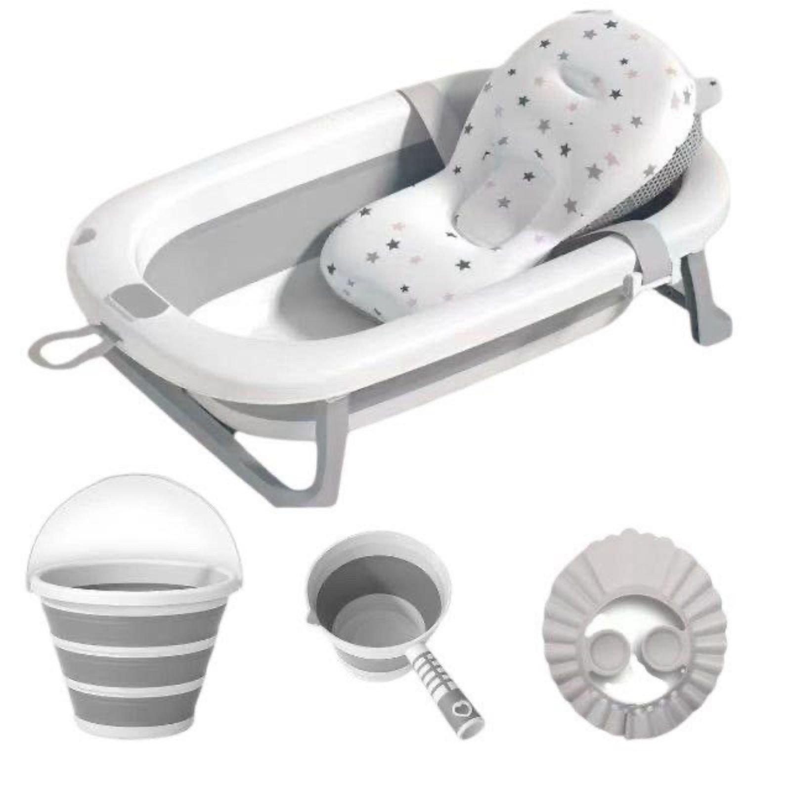 Seti përfshin disa aksesorë praktikë për ta bërë procesin e larjes edhe më të lehtë për prindërit.