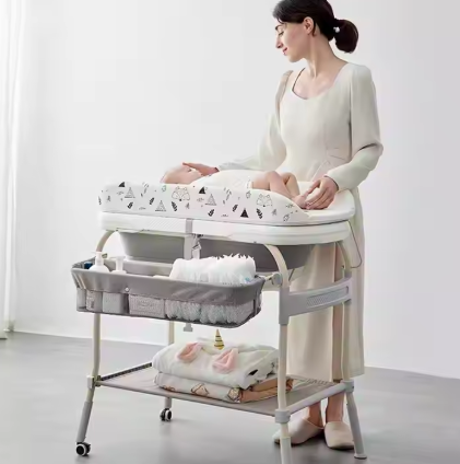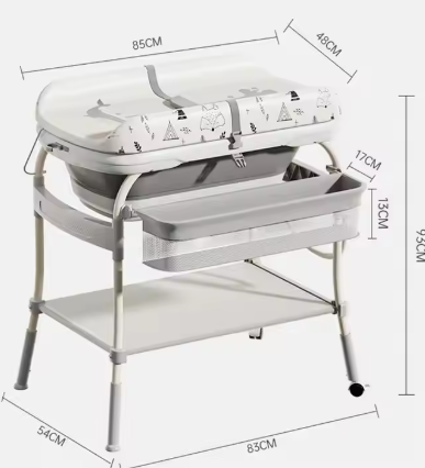 Ky model inovativ kombinon tavolinën e ndërrimit të bebes me vaskë praktike, duke ofruar rehati dhe funksionalitet në një produkt të vetëm. Pjesa e sipërme ka dyshek të butë e të sigurt për ndërrim, ndërsa vasketa poshtë e bën larjen e foshnjës më të lehtë dhe më të rehatshme. Dizajni është i palosshëm dhe i pajisur me shporta anësore dhe hapësira poshtë për ruajtjen e pelenave, rrobave apo aksesorëve të nevojshëm.